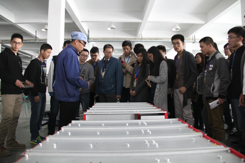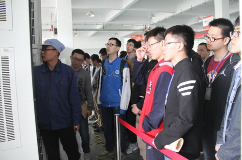 此次学习为期4天,全程由公司人力资源部组织安排。先由人力资源部向其介绍公司的发展历程,企业文化和实习期间注意事项。在参观实习阶段,生产中心相关负责人带领学生们参观生产车间,学习高、中、低压变频器、高压动态无功补偿装置和轨道交通能量回馈装置等主导产品的安装、调试、检测等各个生产工艺流程。公司整洁的环境、先进的生产线、员工娴熟规范的操作,让同学们啧啧称赞。