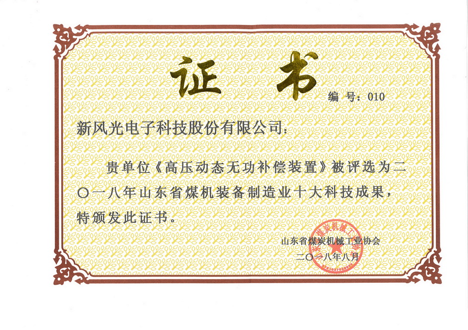 Top Ten Science and Technology Achievement Awards of Coal Machinery Equipment Manufacturing Industry in Shandong Province