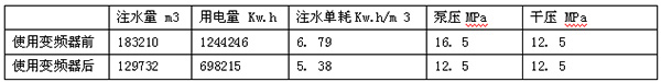 实际节电效果使用变频器前后的耗电情况统计见下表: