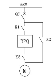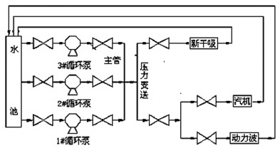 浙江省衢州巨化硫酸厂是我国首批自己设计、制造、安装的重点硫酸生产企业,是浙江省较大的硫酸生产厂。在硫酸生产过程中,需要对水冷极板进行冷却,冷却水循环泵是硫酸生产工艺中的重要设备,过去冷却水循环泵均不调速,利用出口阀门来控制水流量和管网压力,由于设备的选择都是按最大负荷情况来选型,在实际运行中设备留有较大的裕量,冷却水的流量与压力是通过冷却水循环泵出、入口联络管上的调节阀来进行调节,造成电动机运行效率较低,造成电能浪费,为降低企业生产成本,厂家领导经过反复论证,多方比较,决定选用我公司JD-BP37-280F型高压变频器对冷却水循环泵进行变频调速节能改造,以解决能源浪费问题。用户冷却水循环泵的电动机参数为6KV/280KW异步电动机,额定转速985r/min,水泵参数为500S-35 单级双吸离心泵。冷却水循环泵工作原理如图2所示,三台循环泵两开一备。