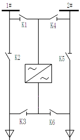吉林某水务集团结合该自身的实际情况,为满足泵站的安全运行需求,要求水泵电机一用一备设置,因此选择了JN江南体育官方网站JD-BP38系列高压变频调速系统中一拖二手动运行的主回路,主回路图如图3所示。其中K1刀闸与K4刀闸互锁,保证两路高压电源不会同时作用于变频回路;K2刀闸与K3刀闸互锁,保证工频电源与变频电源不会同时作用于电机M1;K5刀闸与K6刀闸互锁,保证工频电源与变频电源不会同时作用于电机M2.